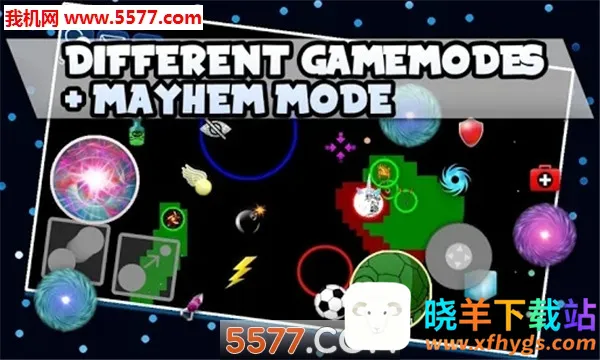 游戏有多种模式,像FFA、队伍、生存等,还有加强版的mayhem模式,超刺激。操作也不难,虚拟摇杆控制移动,分裂、喷射按钮有独特功能。
