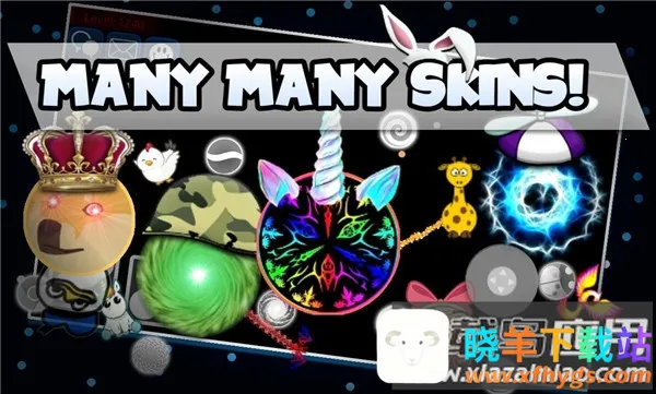 2. **精美独特的皮肤系统**:具备种类多样且精致的皮肤,通过完成对局获得积分来兑换。有超过325种皮肤以独特方式解锁,还支持自定义球体颜色与图案,满足玩家个性化需求。