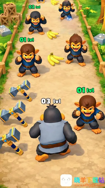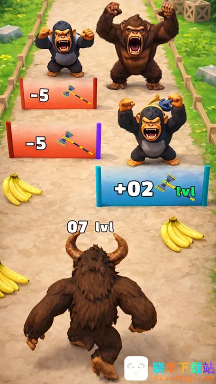 这款猿猴跑酷游戏充满了刺激与挑战。从一只小猿猴起步,不断进化成强大的大猩猩,过程十分有趣。游戏节奏快,左右滑动就能轻松避开危险障碍物,吃掉等级相同或更低的猿猴来成长,拾取锤子等强力道具还能摧毁障碍物,为前进开辟道路。令人上瘾的无尽跑酷玩法,让你仿佛置身于刺激的丛林环境中。还有流畅的滑行操控,搭配有趣的进化系统,每次升级都带来不一样的体验。锤子拾取以及多种加速道具和强化道具,增添了不少策略性。在这个过程中,你要谨慎规划每一步,否则强大的猩猩会阻碍你的进化。如果你喜欢跑酷游戏和有趣的进化元素,那这款游戏绝对值得一试,快来开启你的猿类进化之旅吧!