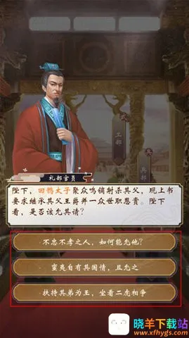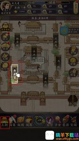 2、首先是上朝,随机点击兵部、礼部等上书奏折,根据选择来获取/减少声望、政务。