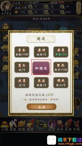 7、有五次免费抽取国运的机会,次数用完了需要每十年才能刷新。
