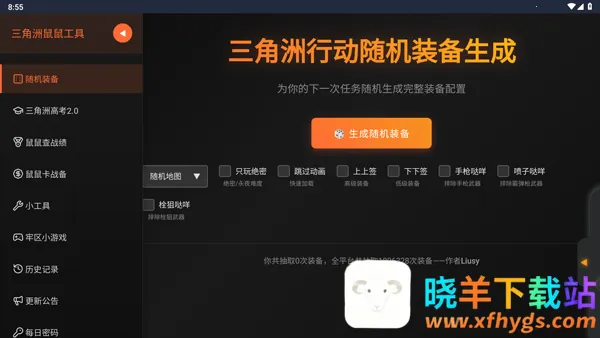 三角洲行动鼠鼠工具是一款超棒的游戏辅助工具。它能帮你卡战备进入游戏对局,花最少的钱凑更高的战备,跑刀赚哈夫币。除了卡战备,它还支持局外战绩查询,让你了解对手信息,更好地做局内作战判断。使用时,打开软件,随机装备功能可让你随机生成地图和装备;点击三角洲高考2.0能进行知识考试。战绩查询输入名字和ID就行。卡战备功能能助你轻松进入对局。还有随机骰子等小工具。它界面干净简洁,全部功能免费。手机版使用也简单,打开后,点击鼠鼠卡战备选所需战备,还能查看密码房每日密码。有了它,能提升你在三角洲行动中的游戏体验,不管规划路线、完成任务还是物资分配都更高效,强烈推荐给喜欢三角洲行动的玩家!