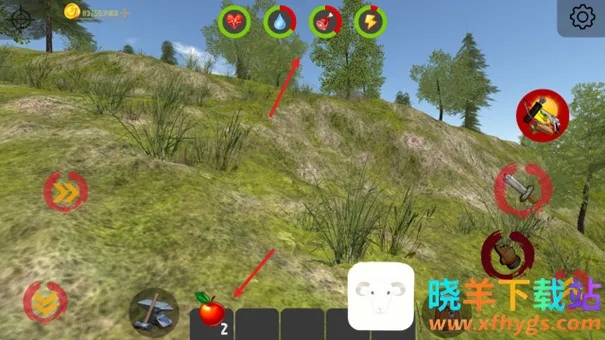 2、点击快捷栏中的食物,可以为我们补充能量。