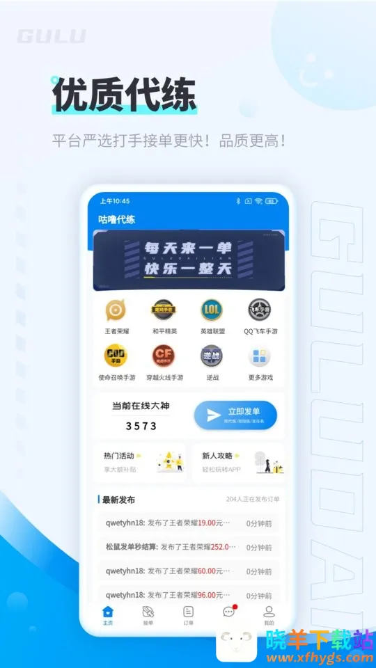 1. 轻松发单:能快捷发布热门游戏代练需求,数万职业代练随时待命,为你服务。