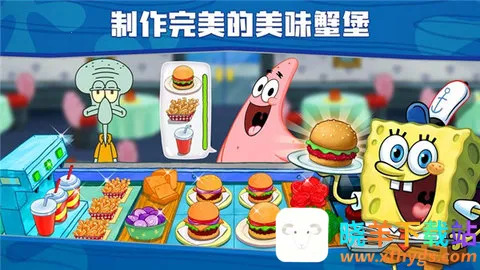 1. 正版授权,带你进入比奇堡:游戏由同名动画片正版授权,让你能与海绵宝宝一同在比奇堡开启趣味十足的料理冒险。