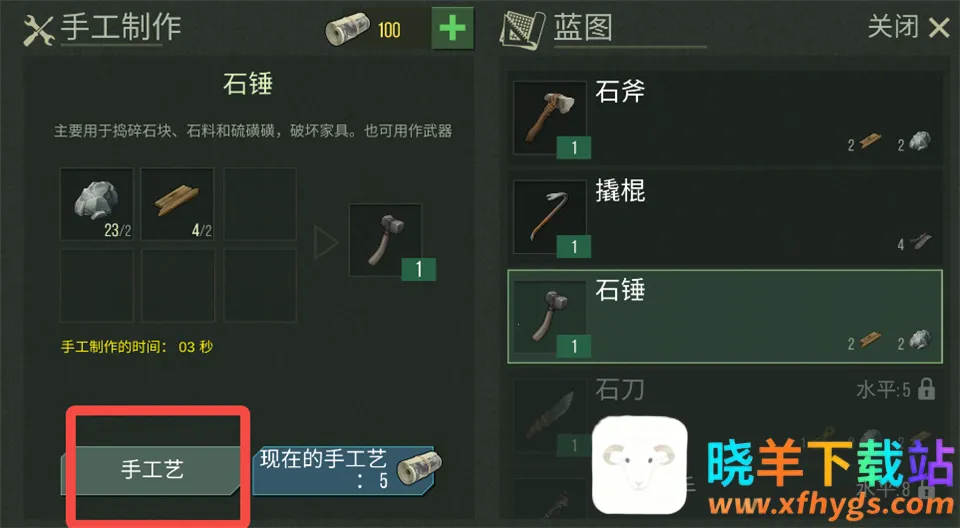3、选择需要制作的物品,点击左下角【手工艺】开始制作。