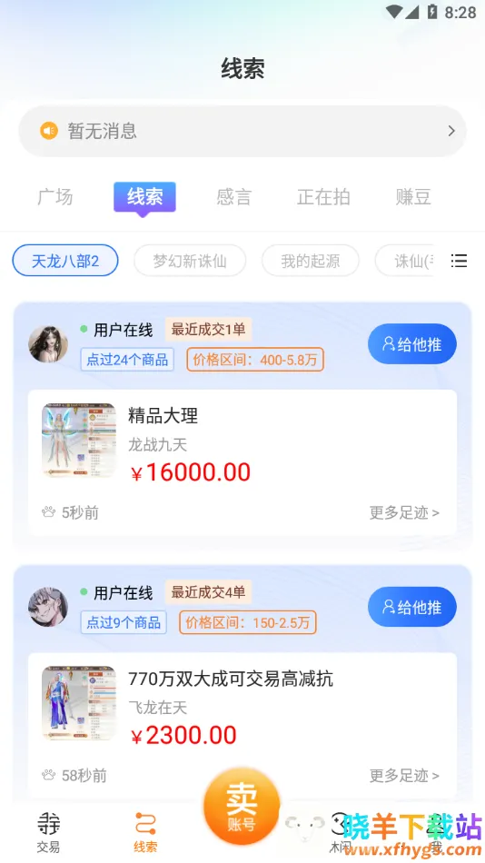 寻宝天行安卓版手机版特色十足。它是游戏官方合作交易伙伴,权威有保障。与官方合作数据互通,安全无忧。具备高效率精准服务器定位,快捷便利。杜绝欺诈营造绿色环境,专业又放心。有钻研游戏多年的团队,提供专业服务。还拥有低佣金多实惠多欢乐的购物服务。在这里,玩家能轻松购买完美旗下所有游戏的虚拟产品,享受安全、快捷、专业、实惠的交易体验,无论是出售还是购买账号、装备等虚拟物品,都能放心操作,尽情享受游戏交易的乐趣。