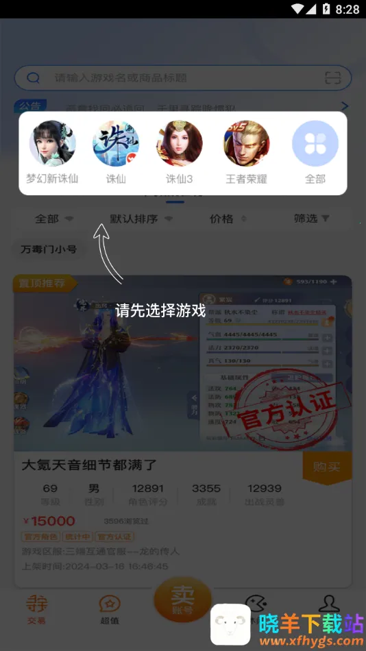 寻宝天行安卓版是完美世界官方推出的手游账号交易平台。支持多种交易方式,提供旗下游戏虚拟产品交易。有专业团队解答疑问,营造安全环境,杜绝欺诈,数据互通,定位精准,低佣金实惠,充值方便,适合所有玩家。