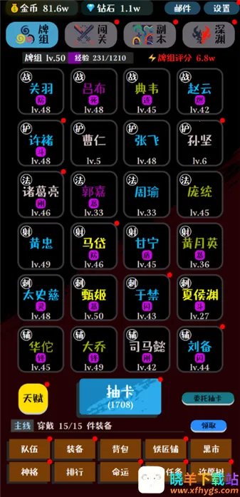 3. 有多样化武将卡,每个自带相应技能,还有很多经典战役,如桃园三结义、赤壁之战、官渡之战等。