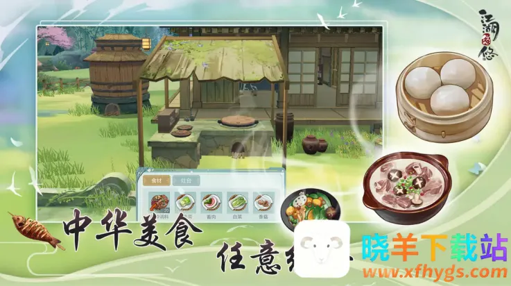 在游戏里,玩家化身悠闲侠客,可从多名角色中选择,收集材料装饰家园,还有种田、烹饪、酿酒、炼药、种果树、养鸡等丰富休闲玩法。