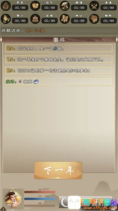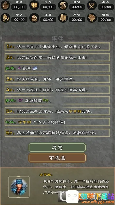 大侠请重来安卓版是一款文字模拟武侠游戏,类似人生重开模拟器。玩家能轮回体验人生,通过点击选天赋、设属性开启江湖闯荡,随机事件考验实力,还有宠物培养、丰富副本等玩法,快来感受快意恩仇。