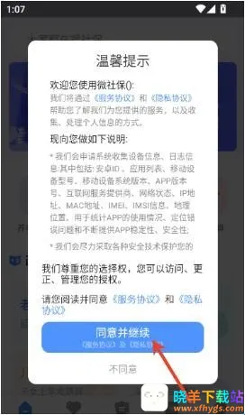 1、首先打开应用点击“同意并继续”按钮来进入app中。