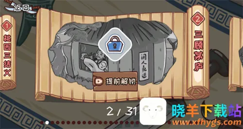 2、关卡探索惊喜多:玩家不知道下一关会魔改哪个经典三国故事,如火烧赤壁、三顾茅庐等,每次开启新关卡都像拆搞笑盲盒,充满期待。