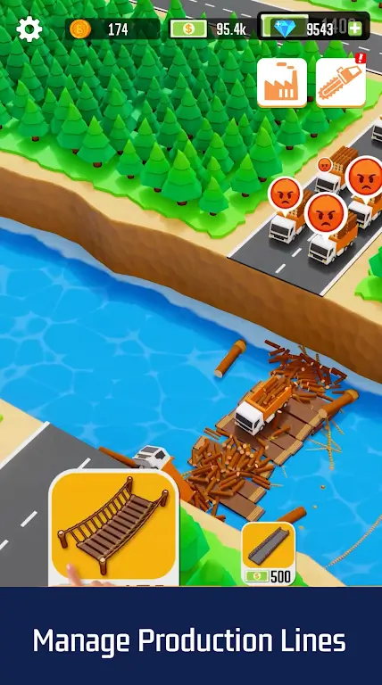 生产线的升级与管理伐木大亨:放置帝国中,原木采集只是第一步。玩家需要将收集到的原木通过锯木厂进行加工,生产出高附加值的木制品。游戏设计了丰富的工厂设备和生产流程,玩家通过合理布局和升级锯木厂,提高木材加工效率,增加产品品质和产量。生产线的优化不仅提升收益,也为后续扩张提供物质基础。