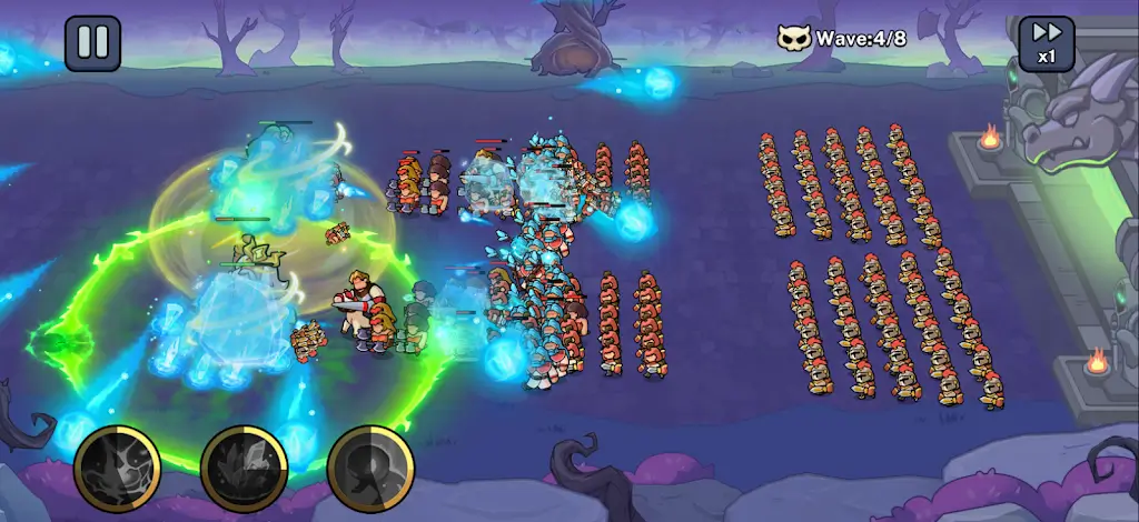多样兵种打造独特军团阵容,步兵近战冲锋,弓箭手远程输出,骑士攻防兼备,玩家需根据战局调整阵型。丰富多变的Roguelike技能系统,每次战斗随机生成技能组合,可自由选择提升。实时战斗机制带来沉浸式体验,激烈厮杀画面极具视觉冲击力。设有丰富成长体系,通过胜利升级士兵属性、解锁精英单位,挑战Boss难度逐步提升。