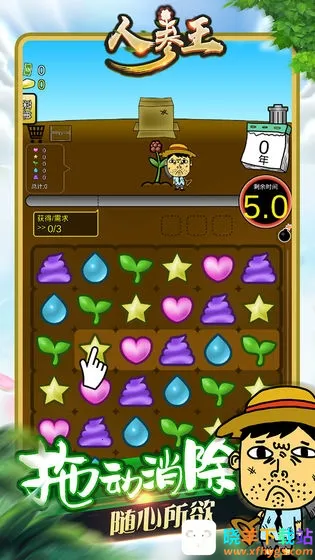 人参王是一款结合魔性表情与轻松种植玩法的手游。有消除赚金币、经营种植园玩法,通过消除获养料培育人参。还有轻快音乐、趣味种植、新颖消除玩法,操作简单,画面有趣,可社交分享、排行榜竞争。