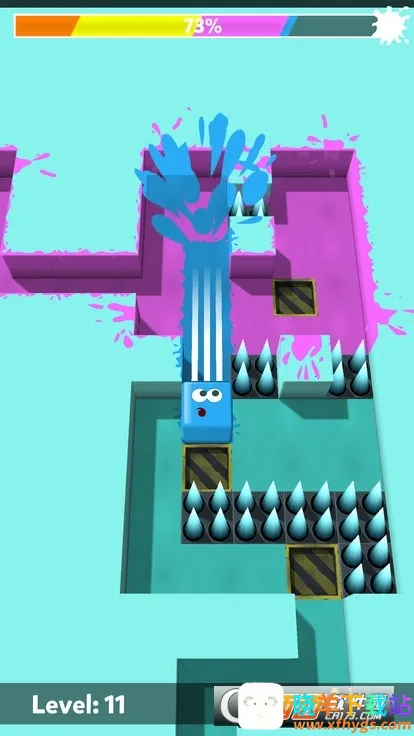 1. 动态色彩反馈:方块移动轨迹实时染色,碰撞障碍时产生色彩爆炸特效,搭配渐变光影效果,增强视觉冲击力。