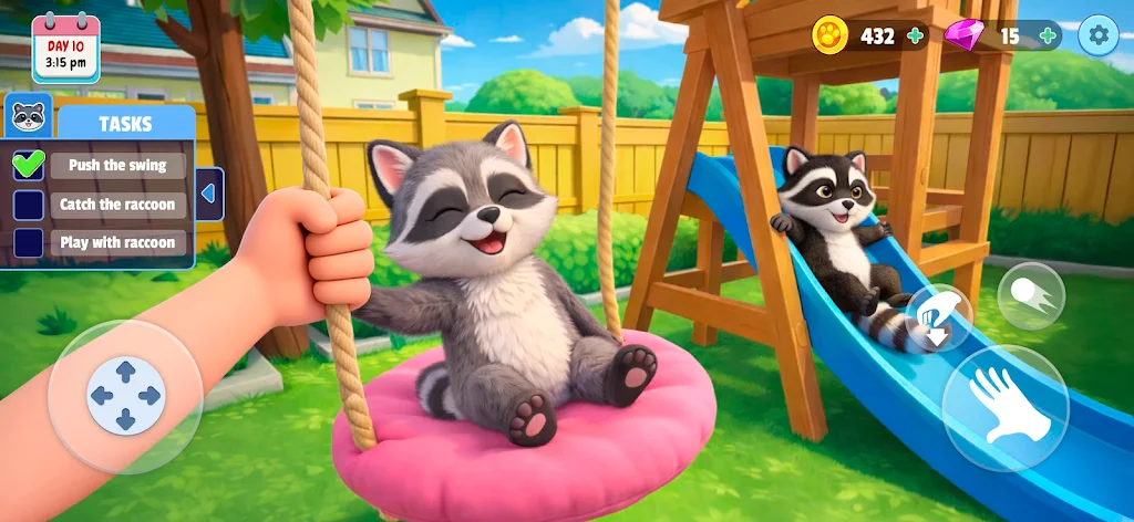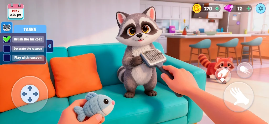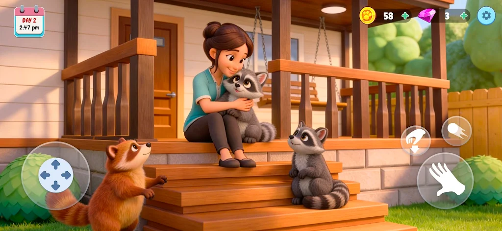 你可以自由决定如何照顾这些毛茸茸的小伙伴,从喂食到布置家园,每一个细节都充满了乐趣。通过丰富的互动,你能真切感受到与浣熊之间情感的逐渐升温,它们会从最初的谨慎变得对你完全信任。这种细腻的情感培养过程,让游戏不仅仅是娱乐,更像是一次心灵的治愈之旅。