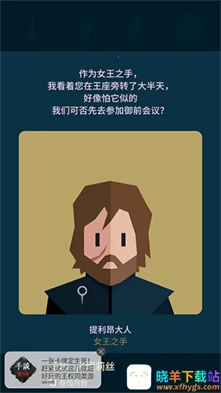 《王权:权力的游戏》是一款超有趣的文字卡牌策略手游。它以同名电视剧为蓝本,让你化身瑟曦、琼恩雪诺等经典角色,角逐铁王座。游戏画面抽象简洁,角色辨识度高,玩法超丰富。