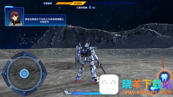 4、按住右侧的上升键,操控机甲升空,获取空中视野优势。