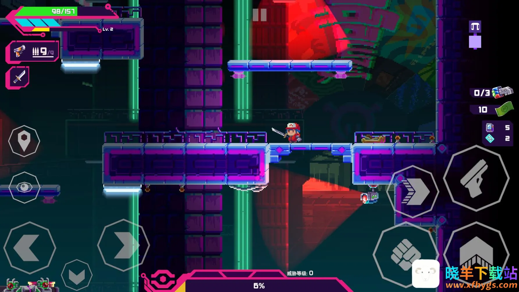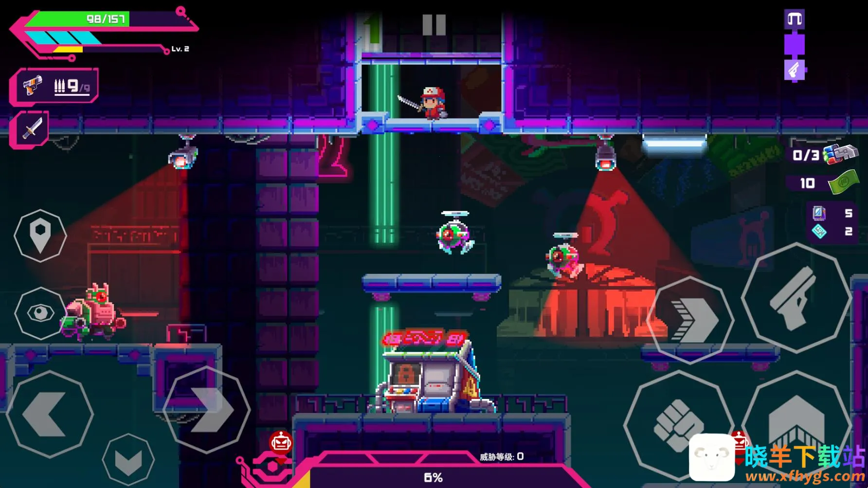 1、独特像素画风:复古像素风格与赛博科幻背景巧妙融合,打造出别具一格的视觉感受,带来全新游戏体验。