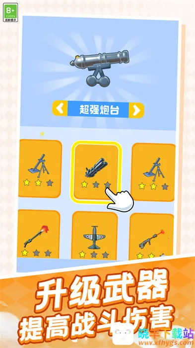 2、武器进阶,固若金汤:深度打造武器升级系统,强化火力输出并加固防御壁垒,全方位提升城堡综合战力。让您的堡垒在硝烟中愈发坚不可摧,从容抵御敌军如潮攻势。