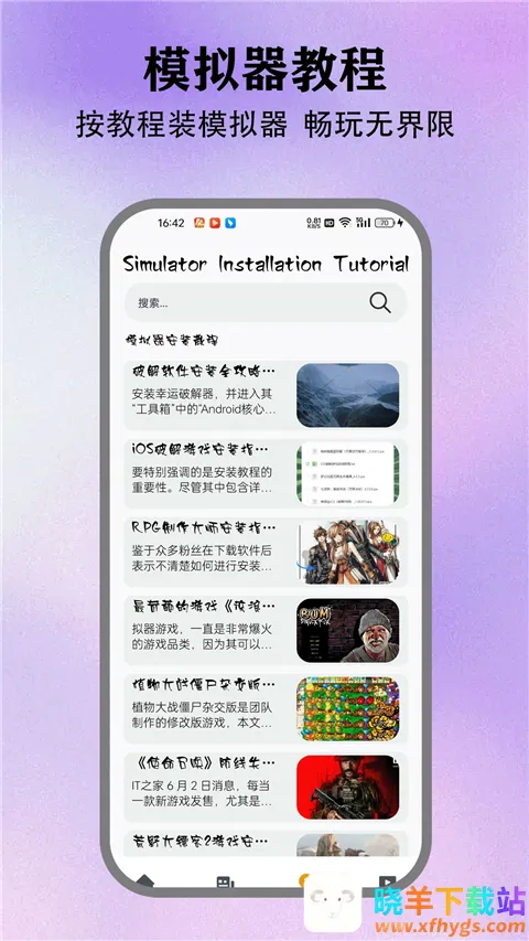 3. 查找便捷:查找游戏资讯时,进入App在首页搜索框输入名称或类型点击搜索,相关游戏便会列出;查找模拟器教程进入教程界面,选择想了解的模拟器按步骤操作即可。