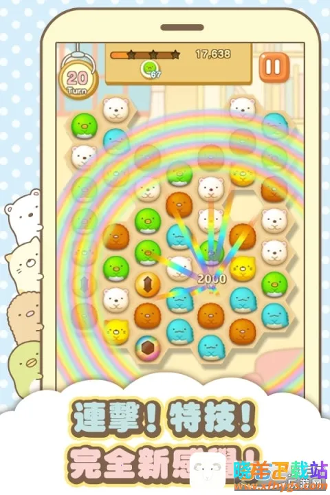 角落萌宠是一款备受欢迎的休闲益智消除手游。它有着独特魅力,与传统三消不同,采用四消玩法,四个同色方块连起来消除,方格变为六边形,消除同色越多还能进化成特殊方块。其画风软萌可爱,有白熊、炸猪排、猫等各种萌趣角色,能让玩家少女心爆发。游戏音乐轻松愉快,每通过数关还有小动画讲述冒险故事。这里没有时间限制,用移动次数限制,玩起来轻松。目标多样,不只是消除方块,还有消除特定颜色方块、让特殊方块掉落、消除特定位置草丛等。玩家还能培育主角,收集他们的时装和旅途照片,还有新活动更新。总之,它能给玩家带来丰富有趣的游戏体验,让人沉浸其中,不舍得卸载。