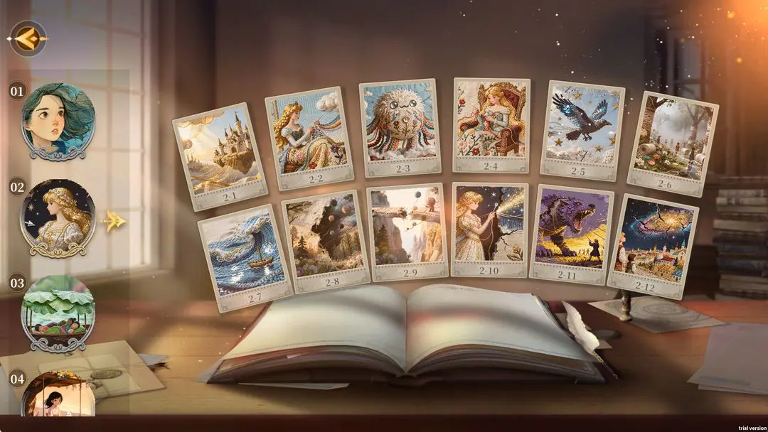 3.主线模式中,每个章节以一个故事主题展开,有12个关卡且无时间限制,新手可借此熟悉玩法。通关要消耗“灵感”,优先推进主线能解锁更多故事与碎片类型,积累基础操作经验。