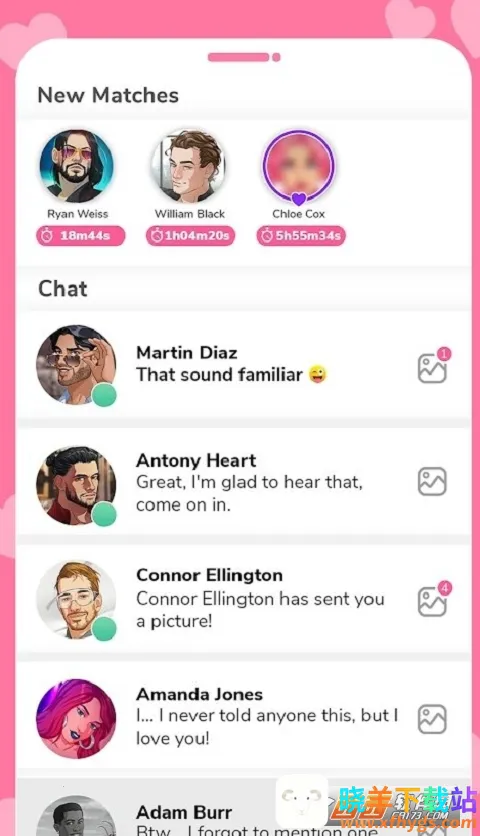 在这里,你是主人公和爱人。通过SWIPE和MATCH能遇见数十个不同角色,有着各异背景和故事,浪漫、冒险或戏剧等你来体验。与有深厚感情的人约会,建立联系,享受自拍照,用表情符号反应并做出影响故事的选择。还能与喜欢的人配对,通过有趣聊天和对话了解虚拟恋人,揭露他们的秘密。它能让你在虚拟世界中淋漓尽致感受爱恨情仇,享受复杂关系并找到突破口。以颇具艺术风格的方式交友,学会利用艺术交流,多种人物角色关系等你来探索,幽默风格能拉近彼此距离,产生好感,快来开启浪漫约会之旅吧!