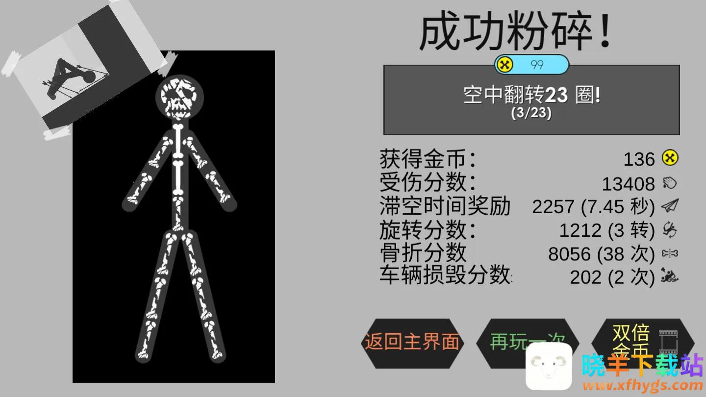 粉身碎骨2025官方最新版本特色满满。拥有精心设计的数十个独特关卡,配合各种奇葩姿势,带来别样趣味。**简约画风**,经典火柴人形象超吸睛。载具加入增添更多可能,结合载具爆破能打造更多奇葩姿势。玩法趣味十足,一辆小轿车就能让火柴人感受刺激死亡挑战,一旦开始便停不下来。还能解锁海量不同场景,充分发挥工具可能性,发掘多样死亡挑战,让你轻松发泄情绪,感受火柴人带来的游戏快感。