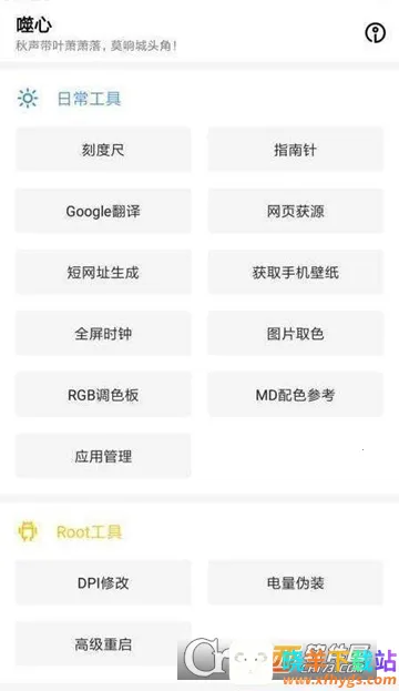 噬心工具箱特色显著。操作界面简单清晰,用户能快速上手,无需复杂学习设置。用户可按需选择下载安装,随时升级更新,获取更好体验。它针对日常需求精心设计,提供常用实用工具,方便进行各种操作。还采用高效压缩算法,占用空间少,不会给手机存储造成大负担,且用户能免费下载安装,尽情享受其便利,全方位满足不同用户各种需求。