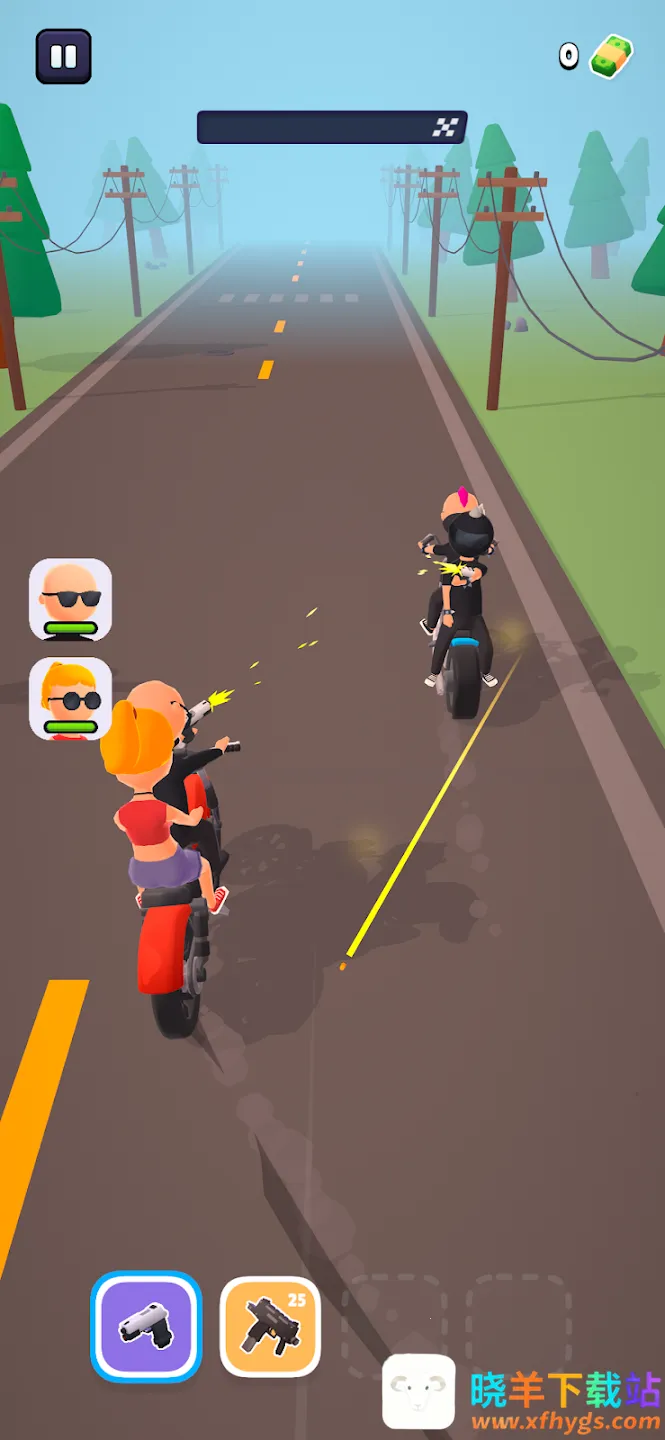在公路之战2025官方最新版本中,要消灭敌人送机密包裹或无辜女孩到交货点。可通过按住或松开屏幕控制骑行速度来制定策略,躲避或追赶敌人。随着进程会遇不同任务,等你来挑战,祝你好运!
