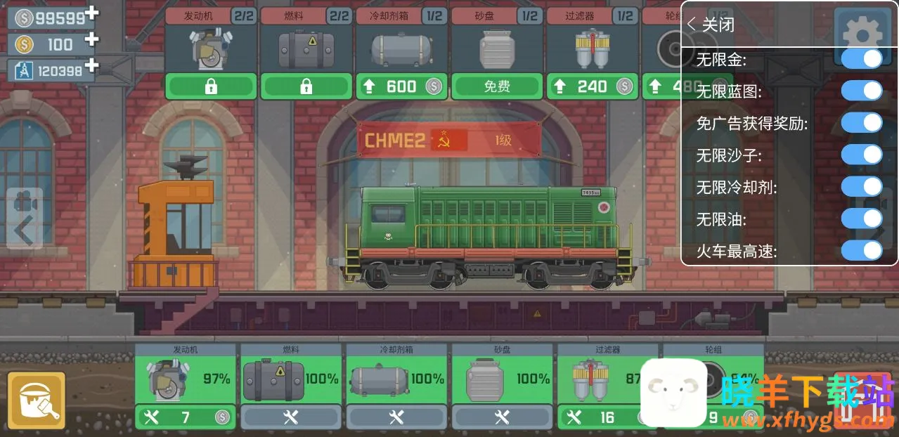 如果你玩腻了普通版的火车模拟器,不妨试试火车模拟器内置菜单MOD!它能给你带来超多惊喜。在这个MOD里,你可以轻松获得用不完的银币、金币和蓝图,再也不用辛苦积攒啦。而且不用看广告就能拿到奖励,节省了不少时间。还有用不完的沙子、冷却剂和油,让火车时刻保持良好状态,高速行驶无压力。即使火车缺油或零件损坏,也不用担心降速问题。有了它,你能更自由地体验游戏乐趣。比如可以尽情解锁不同的场景、天气环境和地图,驾驶各种类型的火车穿梭其中,感受真实的火车驾驶体验,轻松应对各种运输任务,解决运输系统不完善等问题,享受独特的驾驶乐趣,快来下载体验吧!