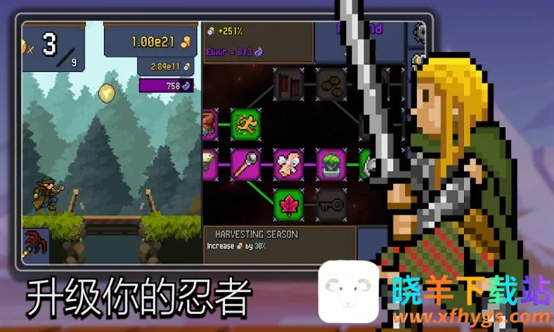 这是一款以忍者为题材的武侠风动作格斗闯关游戏。玩家将操作忍者开启冒险,去消灭邪恶敌人,赢得战斗胜利。