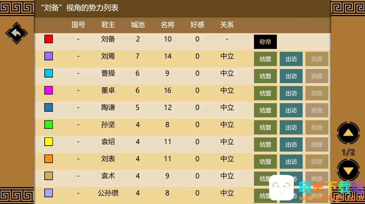 1. 武将系统丰富:武将可进阶修炼,麾下士兵也能提升进阶,多余武将有缘分还能成为副将,共同为主公效力。每个武将都有独特技能和背景故事,为玩家带来多样体验。