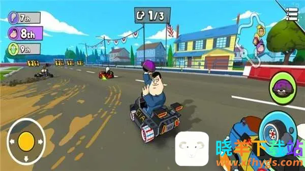 《恶搞之家卡丁车》手机版是一款超有趣的赛车游戏。它以同名美国喜剧动画片为原作改编,集结了众多标志性角色,每位角色都有专属卡丁车。游戏延续传统卡丁车操作逻辑,上手简单但有策略深度,融入了恶搞之家独有的无厘头幽默风格,从角色台词到道具设计都充满笑点。