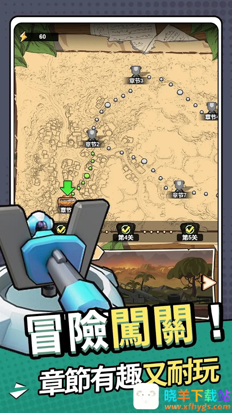 3、合成升级系统:通过合成系统可将低级炮塔升级成高级炮塔,还能在不停的融合提升中得到更强大的武器与装备,增强防御力和伤害。
