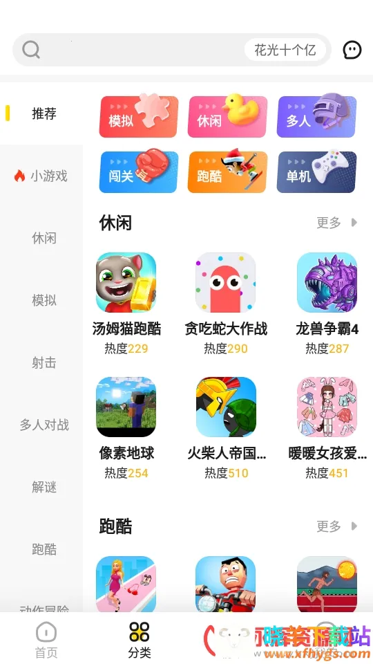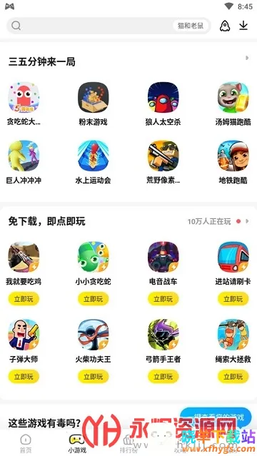 2、资源丰富:提供海量小游戏资源,涵盖最全最新的游戏,分类齐全,每周上新,还有很多破解版游戏内容,能满足各类玩家需求。