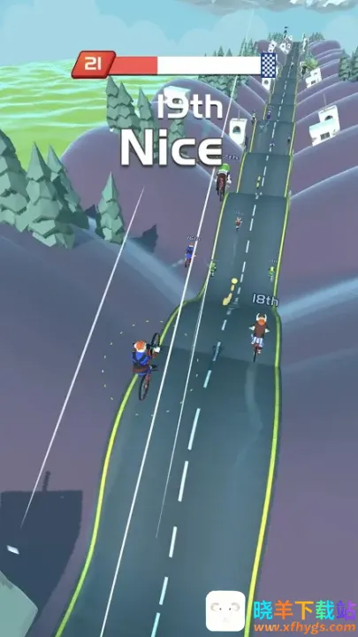 自行车山丘最新手机版是VOODOO开发的休闲自行车竞速游戏,画风清爽简约,玩法魔性解压。玩家长按屏幕提速度、松手飞行超越对手,通过闯关获金币升级。有海量关卡、多种赛道,还能收集金币提升属性,快来享受骑行乐趣!