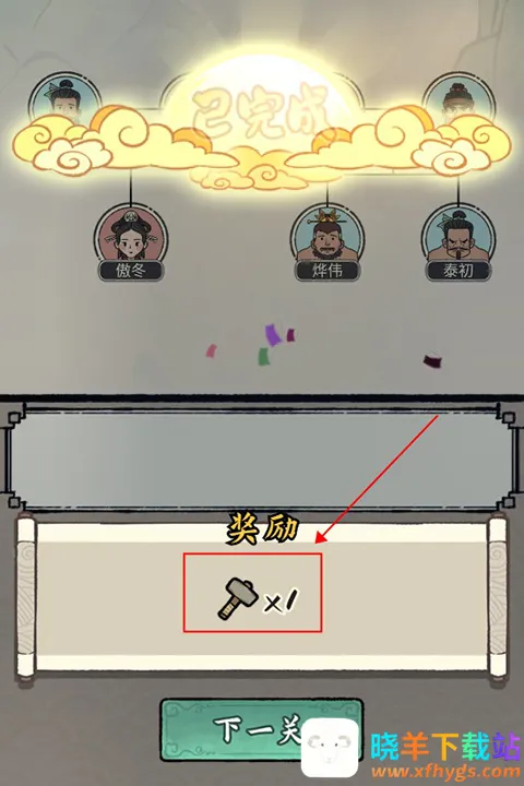 3. **趣味关卡挑战**:拥有丰富关卡,按文字提示将人物头像拖入合适圆框修缮族谱,过程充满挑战与乐趣,成功通关还能获锤子奖励,用于打造家园。
