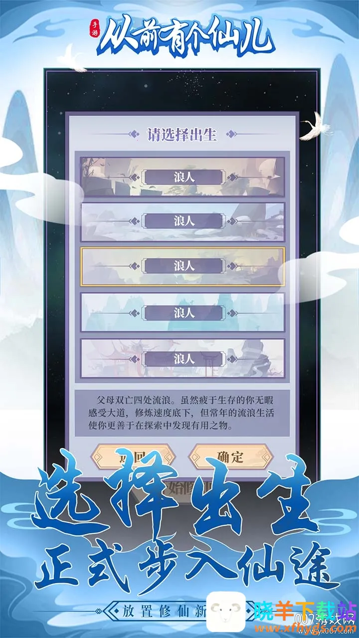 在《从前有个仙儿》这款游戏里,“从前有个仙儿出生选哪个”可是个关键问题呢!游戏为玩家提供了五项出身选择,每种出身都附带不一样的特色属性。这能极大地影响玩家的修仙之旅。比如,选择某种出身可能在前期获得更多资源,助力更快提升实力;而另一种出身或许在后期的特定玩法中更具优势。玩家可以依据自己的喜好和对修仙之路的规划来挑选。正式步入仙途后,快速点击屏幕能获取修仙加速,到一定阶段还可突破进化。从凡人开启修仙,历经炼气、筑基、结丹、元婴、大乘、化身直至渡劫,完整呈现修仙全过程。通过选择不同出身,玩家能体验到多样化的修仙路径,感受不一样的修仙乐趣,打造属于自己的独特修仙传奇,满足对修仙题材游戏的各种期待。