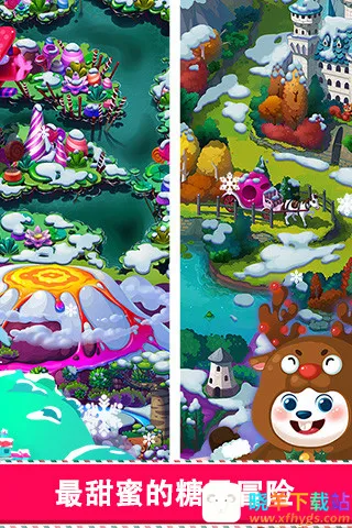 趣味冒险难题:冒险途中有诸多难题,如打开包裹的彩虹糖、击晕并赶走小怪兽、触发魔法漩涡产糖果等。