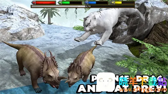 3、高度写实生存模拟:内置健康度、饥饿度、口渴度、耐力四大核心数值,全方位还原恐龙真实生存状态,让你时刻关注恐龙数值变化,通过狩猎、找水源等保障其健康,在残酷史前世界存活。