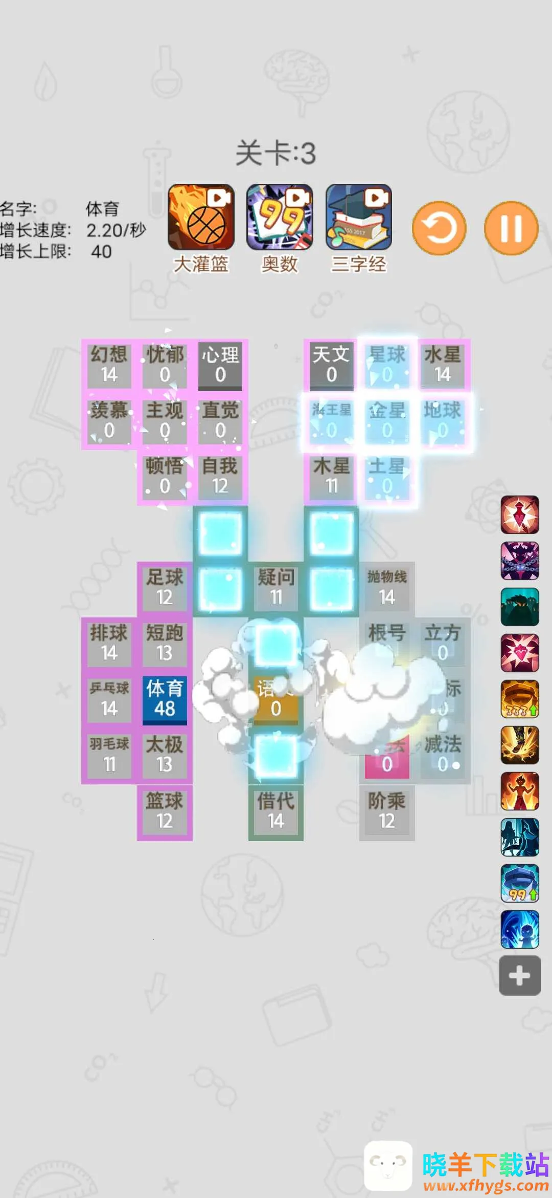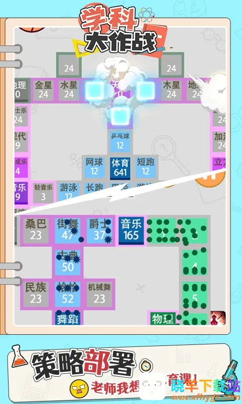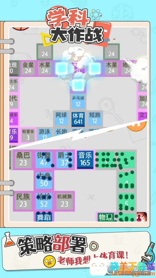 2、关卡任务考验足:每个关卡都有不同的学科占领任务,十分考验玩家的策略规划与反应能力,越往后难度越大。