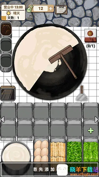 煎饼果子是一款趣味十足的模拟经营游戏。它整体画风采用漫画式风格,场景精致细腻,极大还原摊煎饼的治愈过程。玩家扮演摊主,按客人要求制作煎饼。操作简单,点击选择食材。要准备好面粉、淀粉、鸡蛋等材料,注意火候。每段时间会来不同客人,需求各异。完成任务能获胜得便利,还能解锁新食材,做出多样美味煎饼,感受经营乐趣,体验做煎饼的独特流程。