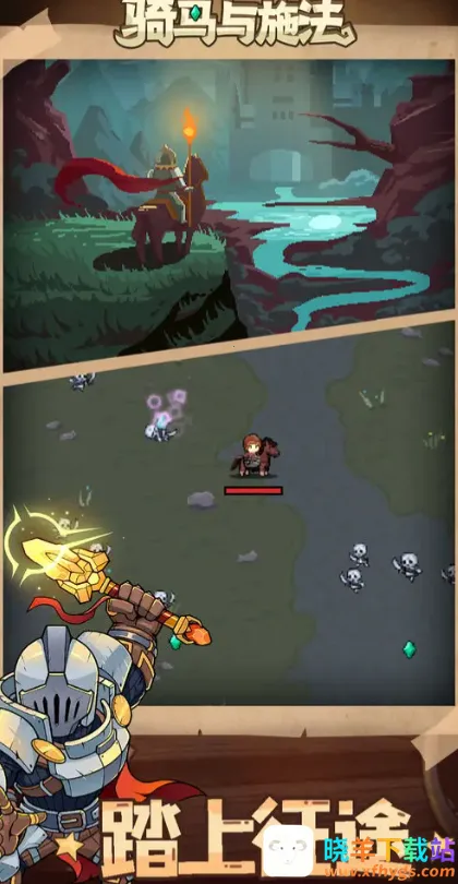 骑马与施法2026官方最新版本是一款像素风割草生存游戏。玩家扮演骑士法师骑马探索,用魔法与剑战斗,消灭怪物升级,自由组合技能属性,收集金币解锁装备,迎战红衣骑士团,还有多种特色玩法与兑换码。