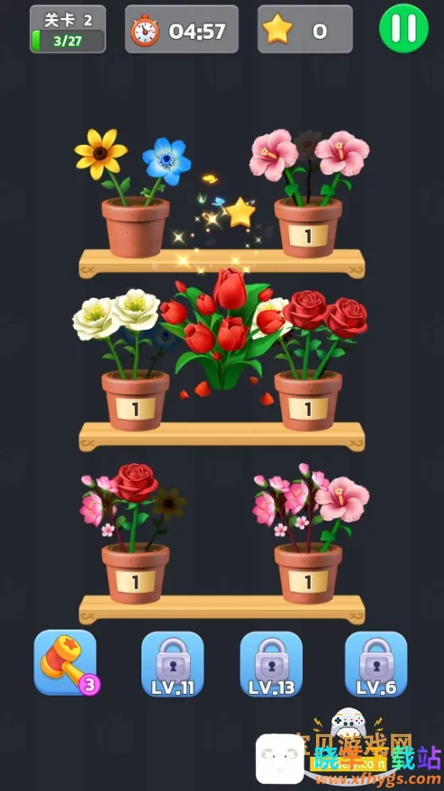 3、独特消除逻辑:三朵同色花入瓶为核心消除逻辑,搭配丰富关卡奖励体系,氛围轻松,适合各年龄段释放压力。