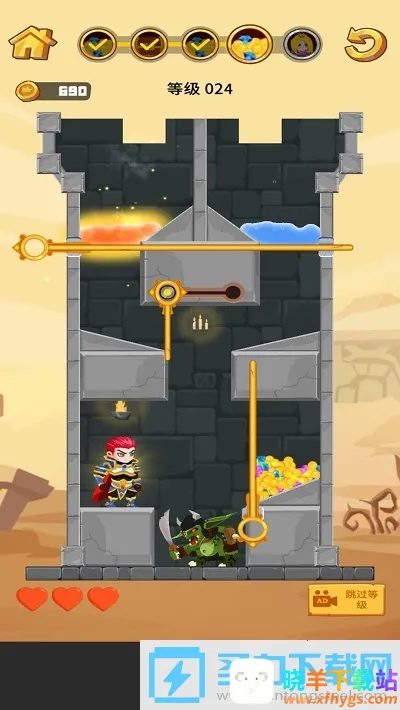 如果你喜欢充满挑战的冒险解谜游戏,那“英雄救援任务(沙盒世界)”绝对适合你!在这类游戏里,你将扮演勇士,凭借思维和操作应对各种机关障碍,为英雄开辟安全逃离路线。比如拉销子杀死蜘蛛、拯救公主并获取宝藏。游戏关卡设计超精巧,每个地牢关卡布局不同,任务要求也各异。英雄角色与怪物位置不断变化,还有诸多巧妙机关和障碍物。操作简单,旋动阻隔杆就能改变自己或敌人位置。它结合物理原理,极具挑战性,每个关卡都是全新考验。而且加入了落石、水火、地刺等新陷阱元素。在这里,你要多动脑思考如何躲避危险,利用水扑灭火等技巧。失败了也别怕,重新开始关卡,吸取经验再来一次。快来体验,证明自己的聪明才智,享受冒险解谜的乐趣吧!