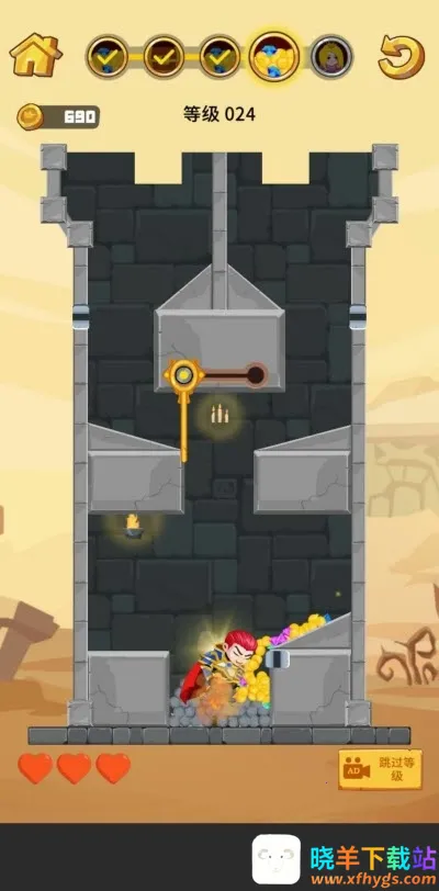 英雄救援是一款像素风格的冒险闯关游戏。玩家扮演勇士,靠思维和操作机关障碍让英雄安全逃离,拉销子杀蜘蛛救公主,还能获宝藏。
